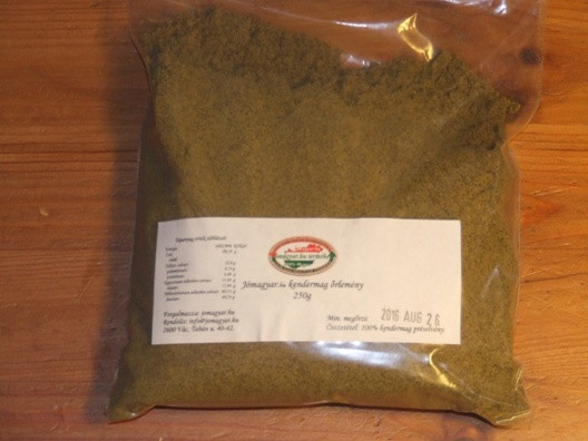 Csak a fél és 1 kilós kapható! A Jómagyar kendermag őrlemény/liszt egy zsírszegényített őrlemény, ami a kendermagolaj préselvényének őrlésével készült. Latin neve Cannabis sativa, ami magyarul (meg)művelt kendert jelent. A kendermag kiváló esszenciális zsírsav és aminosav forrás, ami ritka jó összetételben van a könnyű emészthetőség szempontjából. Kép: a kender termése